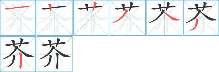芥的笔画顺序分布演示: